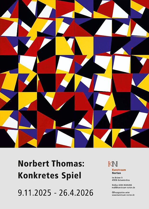 Kann man rationale Konzepte durch Zufälle spielerisch aufbrechen? Die konstruktiv-konkreten Arbeiten von Norbert Thomas zeigen es eindrücklich. In großformatigen Acrylgemälden, Bildobjekten, Papiercollagen und Raumformen aus mehr als fünf Jahrzehnten führt der renommierte Essener Künstler sein "Konkretes Spiel" vor Augen.